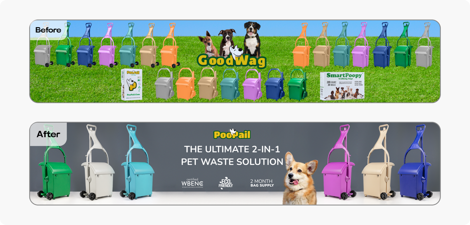- Rebuilt the message around benefits, not confusion → We rewrote listings to speak to what pet parents actually care about: hygiene, convenience, and the relief of finally having a clean, odor-free system that works at home.